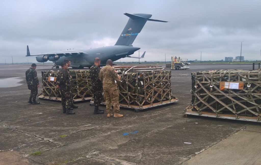 Members of both the U.S. and Philippine armies unload and inspect a delivery of 992 2.75 inch rockets from the U.S. to the Armed Forces of the Philippines (AFP) at Clark Air Base, Pampanga. This delivery is one of many recent deliveries from the U.S. through the Mutual Logistics Support Agreement (MLSA) that enhance the AFP’s counterterrorism capabilities and directly support AFP members engaged in current counterterrorism operations.